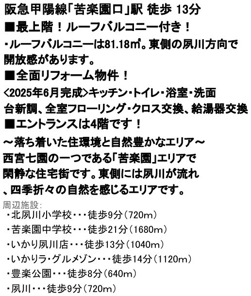 | 交通 | 阪急甲陽線 苦楽園口駅まで 徒歩12分 |