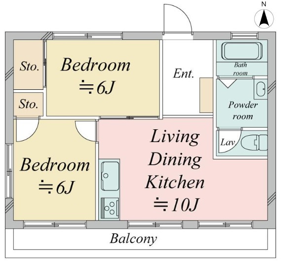 ◆専有面積44.34㎡の2LDKです/最上階・5階のお部屋で眺望あり