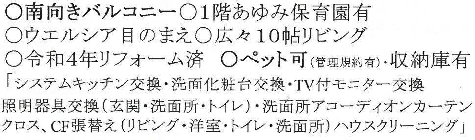 | 特徴 | ◆ワイドスパンの南向き南西角部屋で陽当たり通風良好!