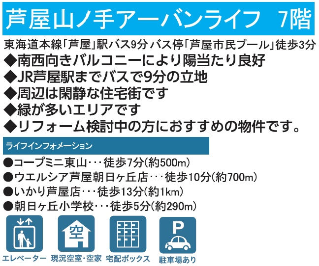 | 交通 | JR東海道線 JR芦屋駅まで バス8分 停歩3分