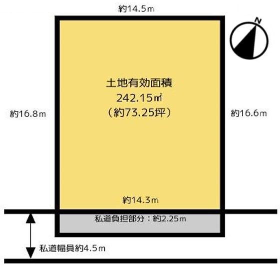 | 接道 | 南 4.5m(幅員) 42条2項道路 14.3m(接面) |