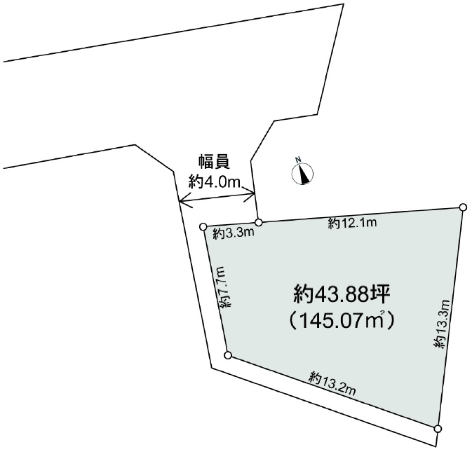 | 接道 | 北 4m(幅員) 42条2項道路 3.3m(接面) |