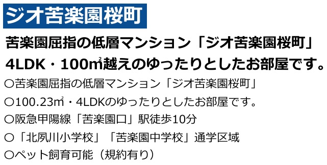 | 交通 | 阪急甲陽線 苦楽園口駅まで 徒歩9分 |