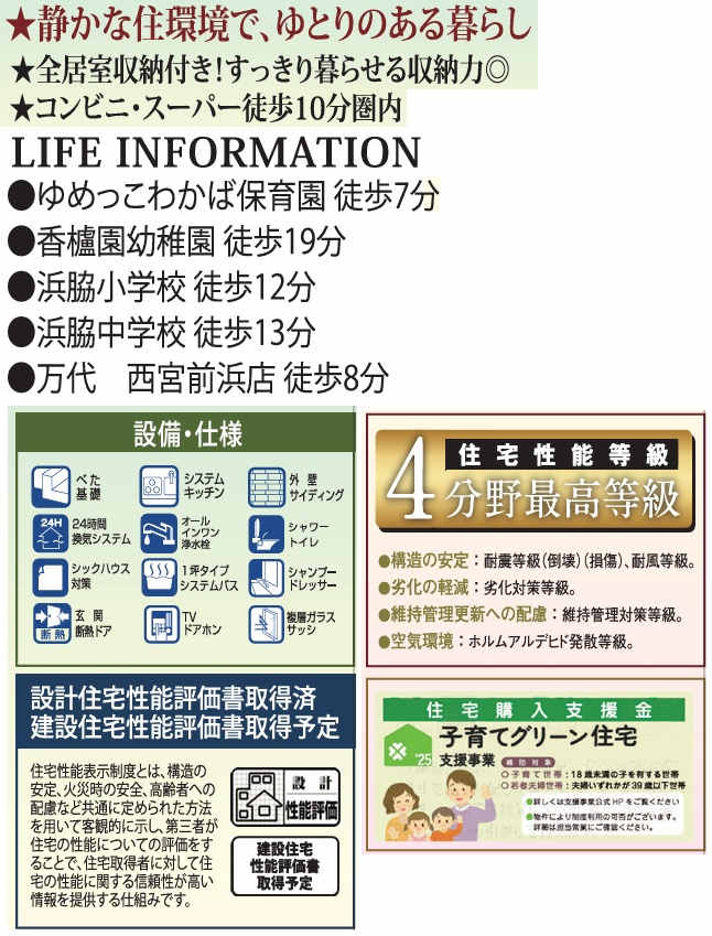 ◆駐車場あり ◆阪神「西宮駅」徒歩18分/阪神「西宮駅」バス6分「鞍掛町町」バス停徒歩2分 ◆ローソン西宮久保町店・徒歩2分/西宮鞍掛郵便局・徒歩5分/西宮浜戎公園・徒歩5分/マンダイ西宮前浜町店・徒歩8分 ◆人気の浜脇小学校・浜脇中学校区です |