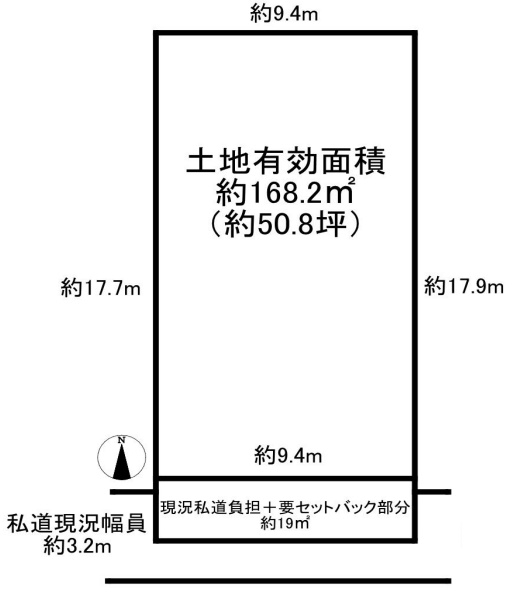 | 接道 | 南 3.2m(幅員) 私道 9.4m(接面) |