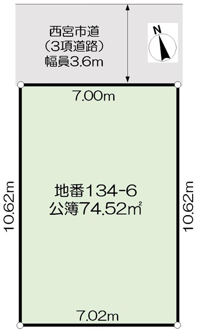 | 接道 | 北東 3.6m(幅員) 公道 7m(接面) |