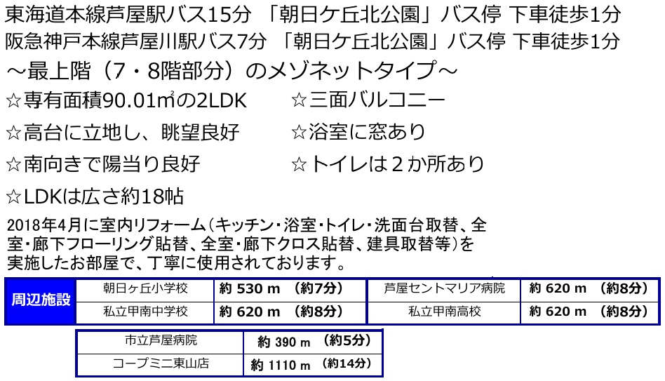 阪急神戸線 芦屋川駅まで バス8分 停歩1分 |