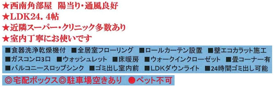 ◆2001年(平成13年)11月に(株)大林組施工のマンションです ◆専有面積90.67㎡の2LDKです ◆LDKは約24.4帖あり/LDの2カ所にはガス温水式床暖房付/全居室に窓と収納あり/洋室約8.0帖はウォークインクローゼット付/浴室は暖房乾燥機付/玄関前に専用ポーチ付 ◆宅配ボックスあり/大阪ガスセキュリティサービス導入/平成27年大規模修繕工事済/令和元年12月屋上防水工事済 ◆敷地内駐車場・空き有り(6,000円~10,000円/月) ◆JR「芦屋駅」徒歩17分/阪神「芦屋駅」徒歩16分・「打出駅」徒歩14分/JR「芦屋駅」へバス8分「中央公園前」バス停まで徒歩2分 ◆コープ浜芦屋・徒歩2分/芦屋温泉・徒歩3分/芦屋中央公園・徒歩3分/ライフ芦屋呉川町店・徒歩4分/セブンイレブン芦屋呉川町店・徒歩4分/芦屋市立図書館・徒歩3分/宮川小学校・徒歩9分 |