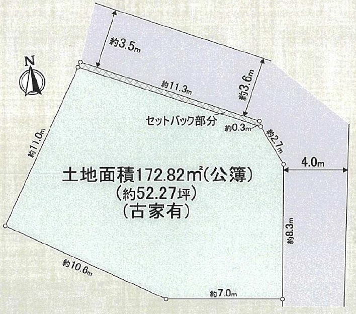 | 接道 | 東 4m(幅員) 公道 8.3m(接面) 北東 3.5m(幅員) 公道 11.3m(接面) |