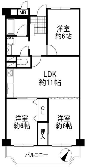 ◆南東×南西×北西の3方角部屋で陽当たり通風良好!