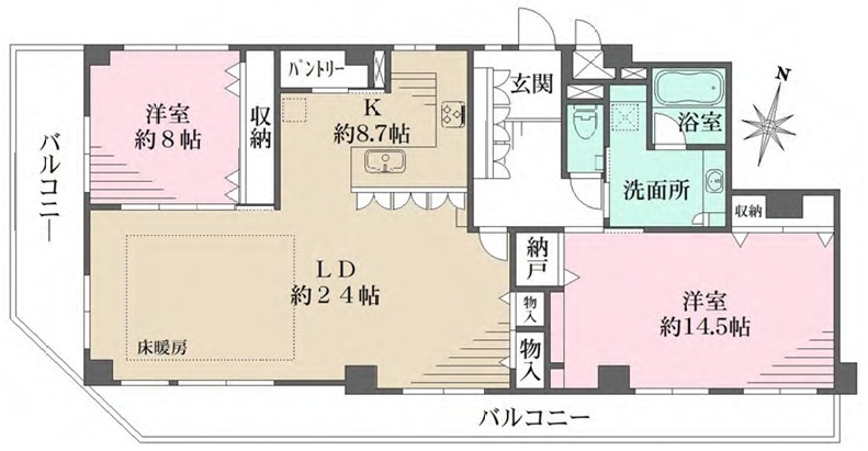 ◆LDKは約16.1帖あり/LDは床暖房付/全居室に窓と収納あり/玄関・廊下は天然大理石/浴室は暖房乾燥機付/トイレは手洗いカウンター付/シューズインクローゼットあり/廊下側にトランクルームあり