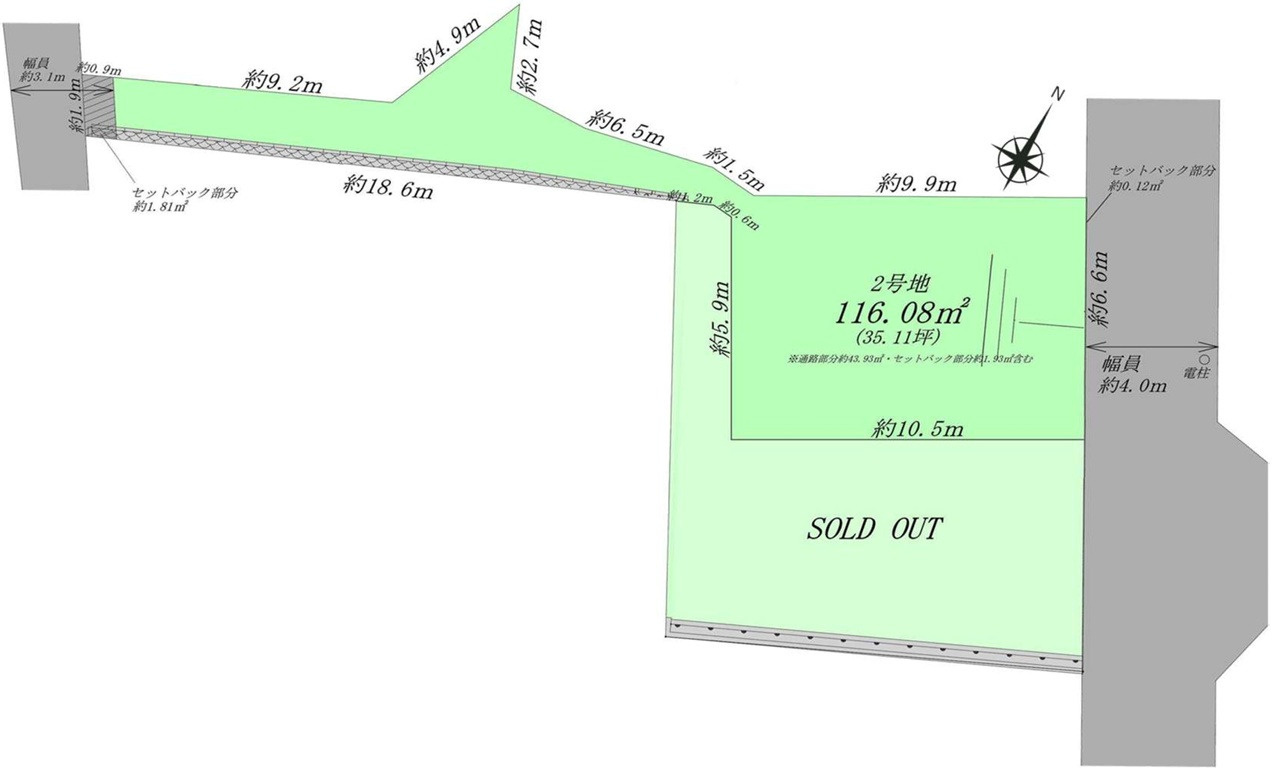 ◆南側公道幅員約4.0mに間口約18.5mが面した区画です