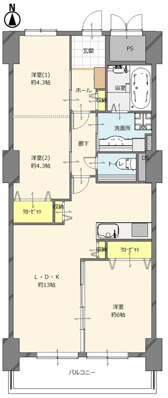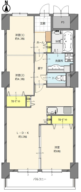 ◆LDKは約18.0帖あり/全居室に窓と収納あり/南側と北側の2カ所にバルコニー付(全室がバルコニーに面す)