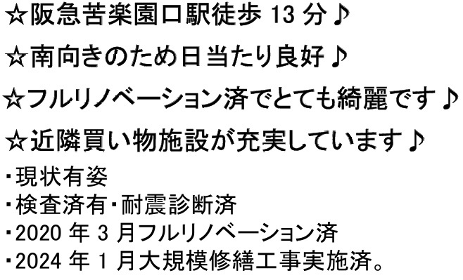 ◆関西スーパー苦楽園店・徒歩12分/西宮樋之池郵便局・徒歩12分/樋之池公園・徒歩13分/コープ苦楽園・徒歩15分