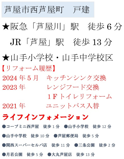 ◆JR「甲南山手駅」徒歩9分・「芦屋駅」徒歩14分/阪神「芦屋駅」徒歩9分/阪急「芦屋川駅」徒歩12分 |