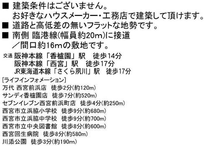 ◆マンダイ西宮前浜店・徒歩2分/川添公園・徒歩3分/セブンイレブン西宮香櫨園店・徒歩4分/夙川オアシスロード・徒歩5分/サンディ香櫨園店・徒歩7分/西宮市立図書館・徒歩8分