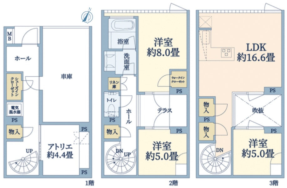 ◆戸建て感覚の3階建てメゾネットタイプです
