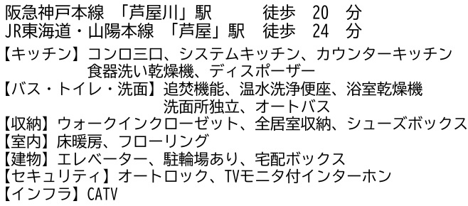◆阪急「夙川駅」徒歩11分/JR「さくら夙川駅」・徒歩18分/JR「芦屋駅」徒歩22分/阪神「香櫨園駅」徒歩19分/山手幹線に「みなと観光」路線バスあり