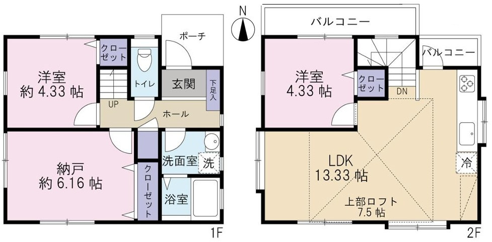 ◆リビングは吹き抜けがありかいほうかんあり/リビングにロフトあり/全居室6帖以上で各部屋に窓と収納あり/2階2室は2間続きで使用可/2階北側納戸約6.0帖は洋室です