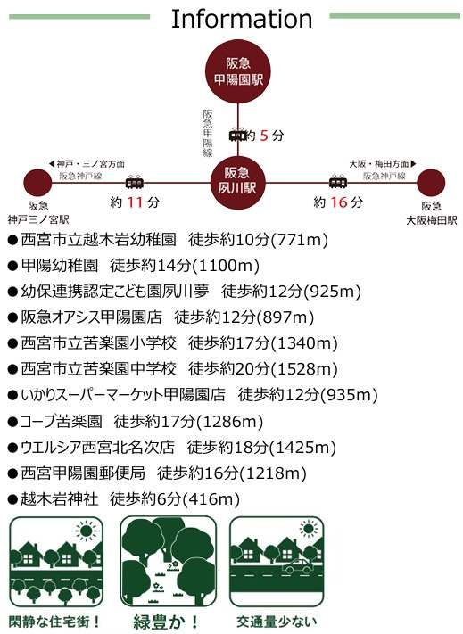 ◆阪急「夙川駅」徒歩11分/JR「さくら夙川駅」徒歩16分/阪神「香櫨園駅」徒歩12分/阪神「香櫨園駅」徒歩15分