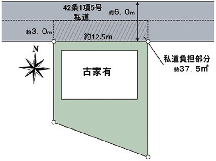 ◆北側道路幅員約6.0mに間口3.0mが面した区画です