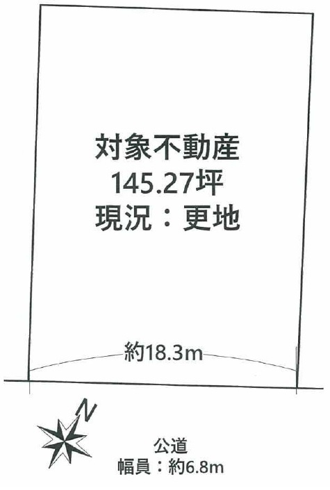 ◆公道幅員約6.8mに間口18.3mが面した整形地です