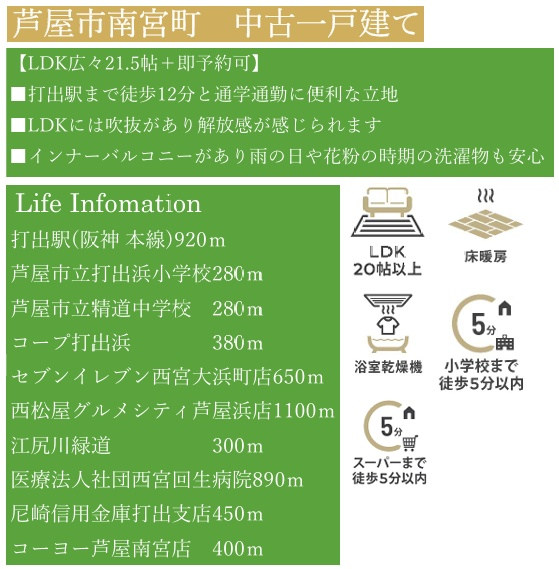 ◆阪神「打出駅」徒歩10分/JR「芦屋駅」バス10分「南宮町」バス停徒歩4分