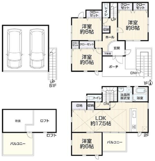 ◆掘込車庫・並列2台駐車可
