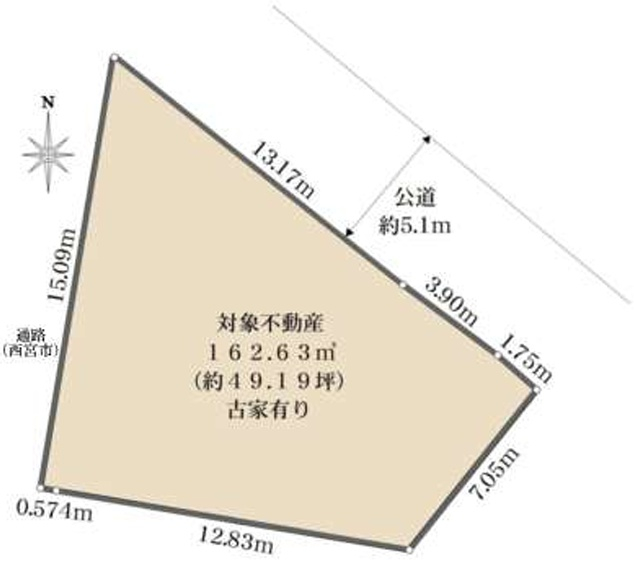 ◆南側公道幅員約14.9mに間口約4.1mが面した整形地です