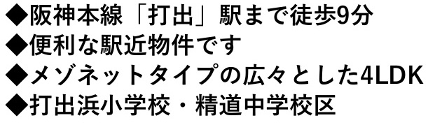 ◆阪神「打出駅」徒歩7分/JR「芦屋駅」バス7分「南宮町南バス停」徒歩3分