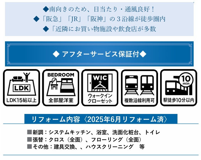 ◆2025年9月リフォーム済:システムキッチン交換(浄水器・食洗機付)/ユニットバス交換(追炊機能・暖房乾燥機付)/洗面化粧台交換/給湯器交換/トイレ交換(温水洗浄便座付)/建具交換/全室フローリング張替/全室クロス張替/CF張替/ハウスクリーニング/等