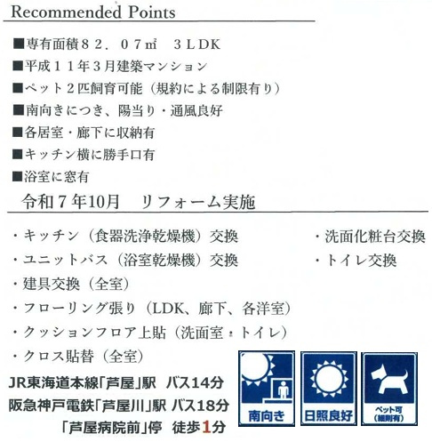 ◆2025年10月にリフォーム済:システムキッチン交換(食洗機付)/ユニットバス交換(暖房乾燥機付)/洗面化粧台交換/トイレ交換/建具交換/フローリング張替/クッションフロア上貼り/クロス張替/CF張替/ハウスクリーニング/等
