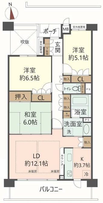◆専有面積80.15uの3LDKです/4階のお部屋で眺望あり♪