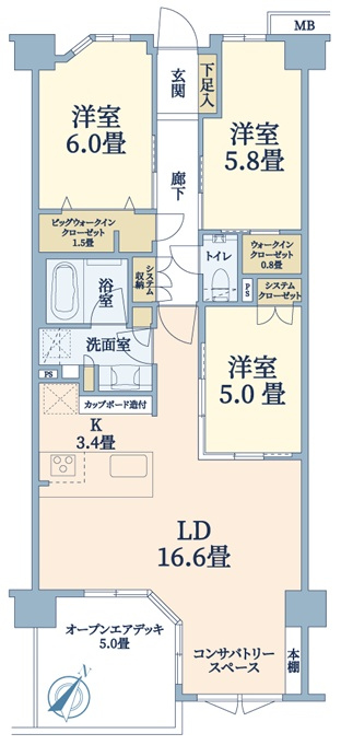 ◆LDKは約19.0帖あり/全居室に収納あり/南側の2カ所にバルコニーあり