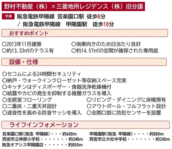 ◆阪急「苦楽園口駅」徒歩11分・「夙川駅」徒歩18分/JR「さくら夙川駅」徒歩19分