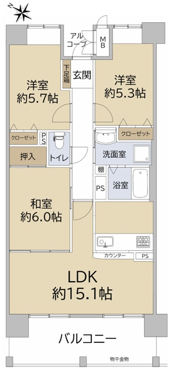 ◆専有面積71.44uの3LDKです