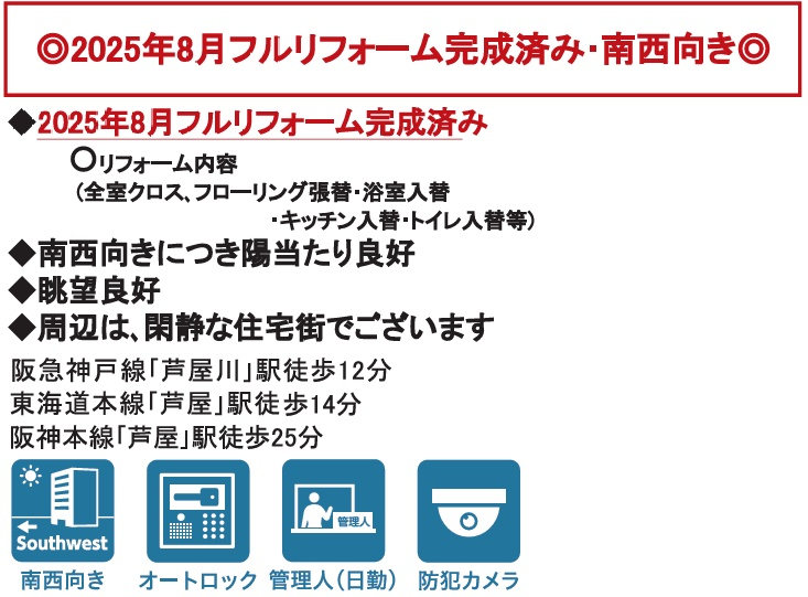 ◆2025年8月フルリフォーム完成済:システムキッチン交換/ユニットバス交換/洗面化粧台交換/トイレ交換/フローリング張替/クロス張替/