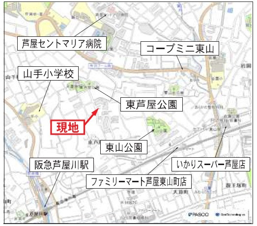 ◆東芦屋公園・徒歩2分/山手緑地・徒歩3分/ファミリーマート芦屋東山町店・徒歩10分/セブンイレブン芦屋東山町店・徒歩11分/いかりスーパー芦屋店・徒歩12分/JR芦屋駅周辺にお買物施設や飲食店・銀行などが揃っています