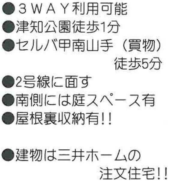| 用途地域 | 第一種住居地域 | 取引態様 | 仲介 | |||||||||||||||