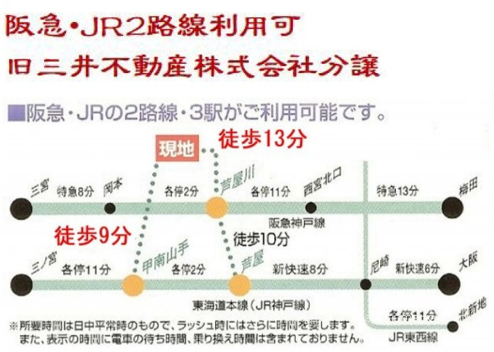 | 交通 | 阪急神戸線 芦屋川駅まで 徒歩12分 JR東海道線 甲南山手駅まで 徒歩8分 JR東海道線 JR芦屋駅まで 徒歩21分 |
