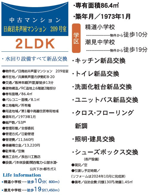 ◆阪急「芦屋川駅」へバス4分「水車谷」バス停まで徒歩2分/JR「芦屋駅」へバス8分「水車谷」バス停まで徒歩2分/阪急「芦屋川駅」徒歩20分 |