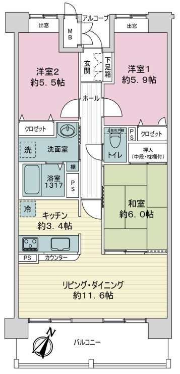 ◆専有面積91.12uの3LDKです