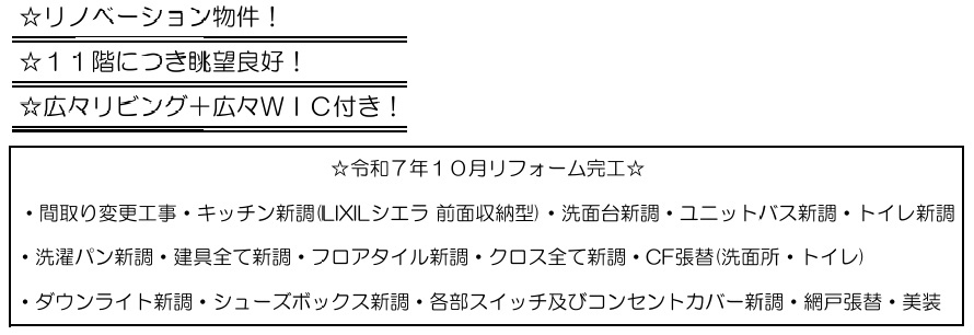 ◆2025年7月室内全面リノベーション済:システムキッチン交換/ユニットバス交換/洗面化粧台交換/トイレ交換(温水洗浄便座付)/エアコン1台新設/給湯器交換/フローリング張替/クロス張替/CF張替/ハウスクリーニング/等