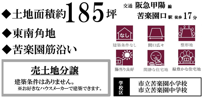 ◆阪急「苦楽園口駅」徒歩19分/阪急「苦楽園口駅」バス8分「苦楽園一番町」バス停徒歩1分/阪急「夙川駅」バス4分「苦楽園一番町」バス停徒歩1分/JR「芦屋駅」徒歩14分「苦楽園一番町」バス停徒歩1分 |