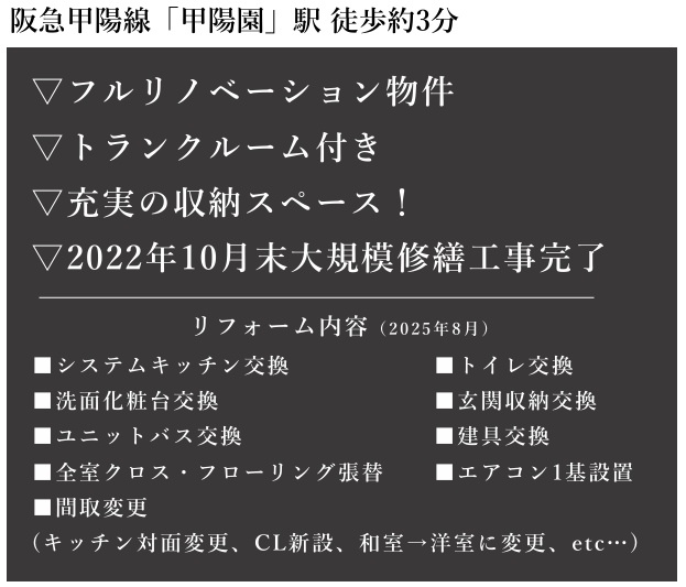 ◆2025年10月末室内リフォーム完成渡し:システムキッチン交換/ユニットバス交換/洗面化粧台交換/トイレ交換/玄関収納交換/建具交換/間取り変更/フローリング張替/クロス張替/CF張替/エアコン1基設置/等
