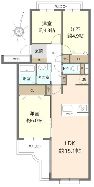 ◆専有面積74.1uの3LDKです/LDKは約15帖あり/