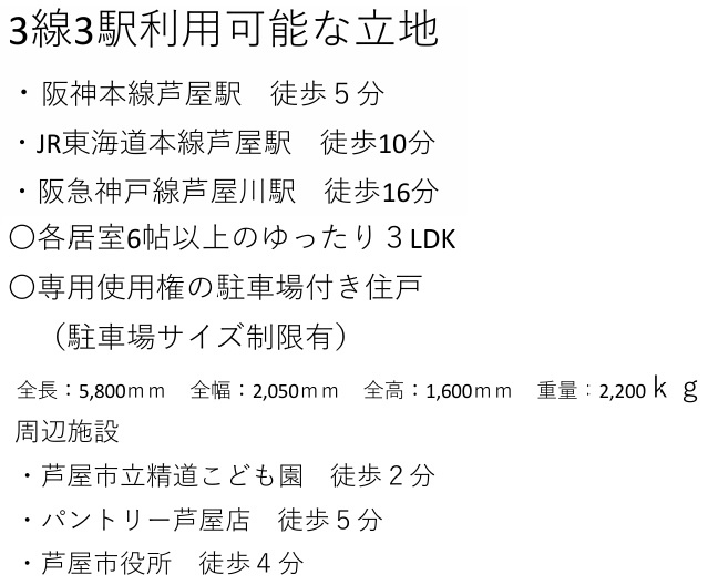 ◆阪神「芦屋駅」徒歩12分/JR「芦屋駅」徒歩18分/JR「芦屋駅」へバス6分「呉川町」バス停まで徒歩2分