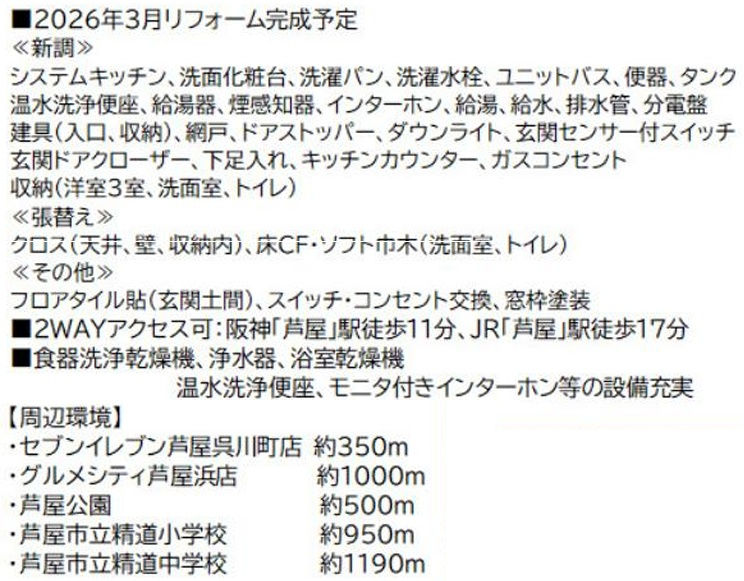 ◆2026年3月リフォーム完成渡し:システムキッチン交換/ユニットバス交換/洗面化粧台交換/洗濯水栓・防水パン交換/トイレ交換(温水洗浄便座付)/給湯器交換/建具交換/フローリング張替/クロス張替/CF張替/照明器具交換/ハウスクリーニング/等