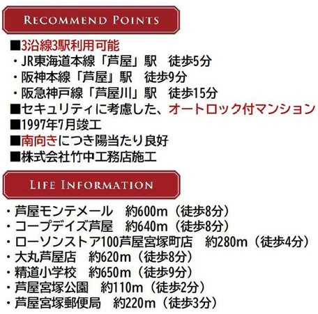 ◆大枡公園・徒歩2分/いかりスーパーJR芦屋店・徒歩5分/パントリー芦屋店・徒歩6分/コープデイズ芦屋(ラポルテ東館)・徒歩9分 |