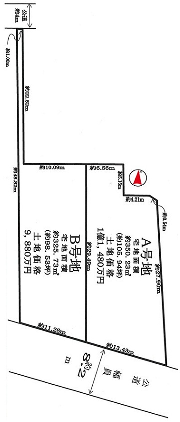 ◆南側公道幅員約8.2mに間口約13.43mが面した整形地です